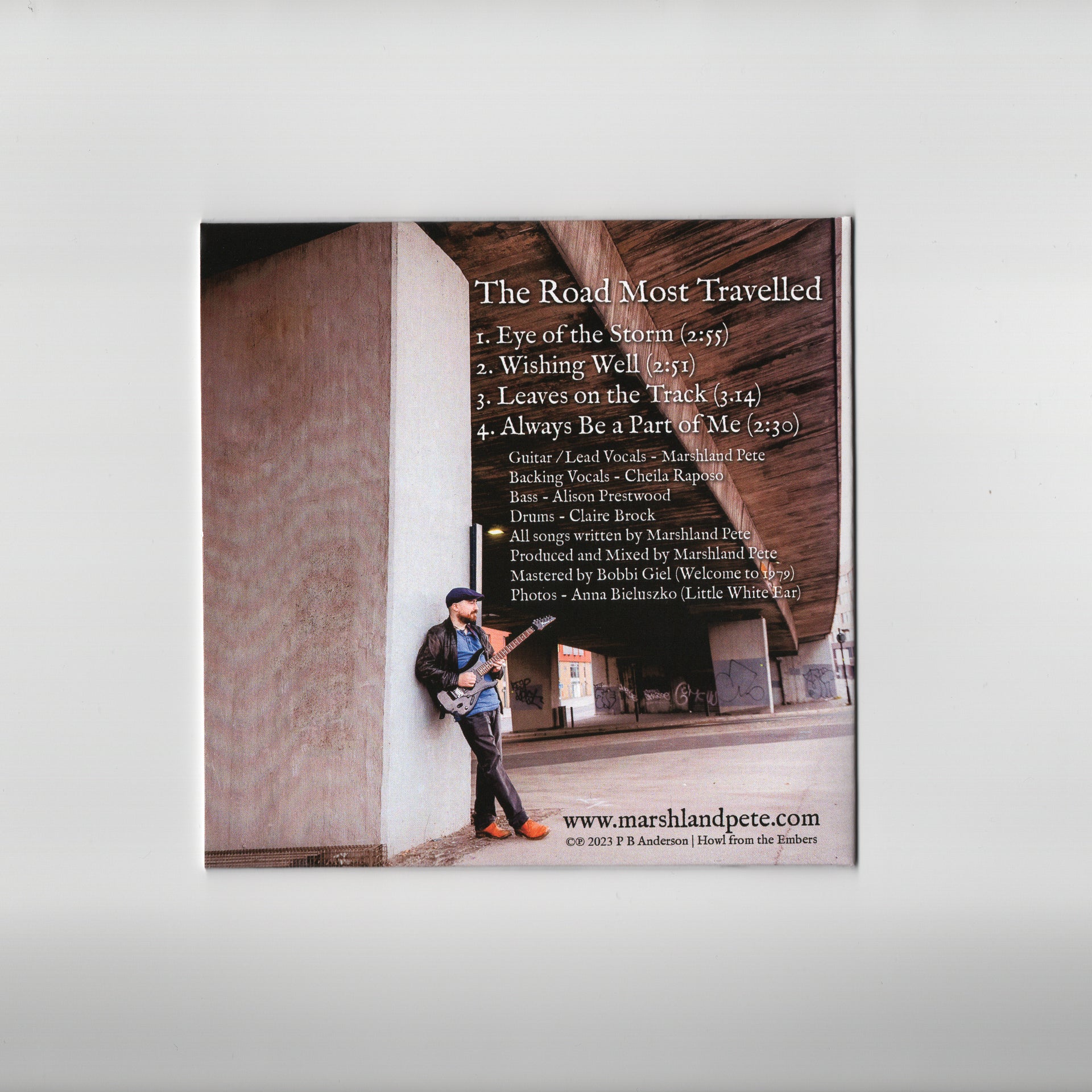 The new Marshland Pete EP on CD! The Road Most Travelled is an EP of reworked past singles. The songs are remixed, remastered, feature some re-recorded guitar/lead vocals, as well as new parts recorded by Cheila Raposo (backing vocals), Alison Prestwood (bass) and Claire Brock (drums).